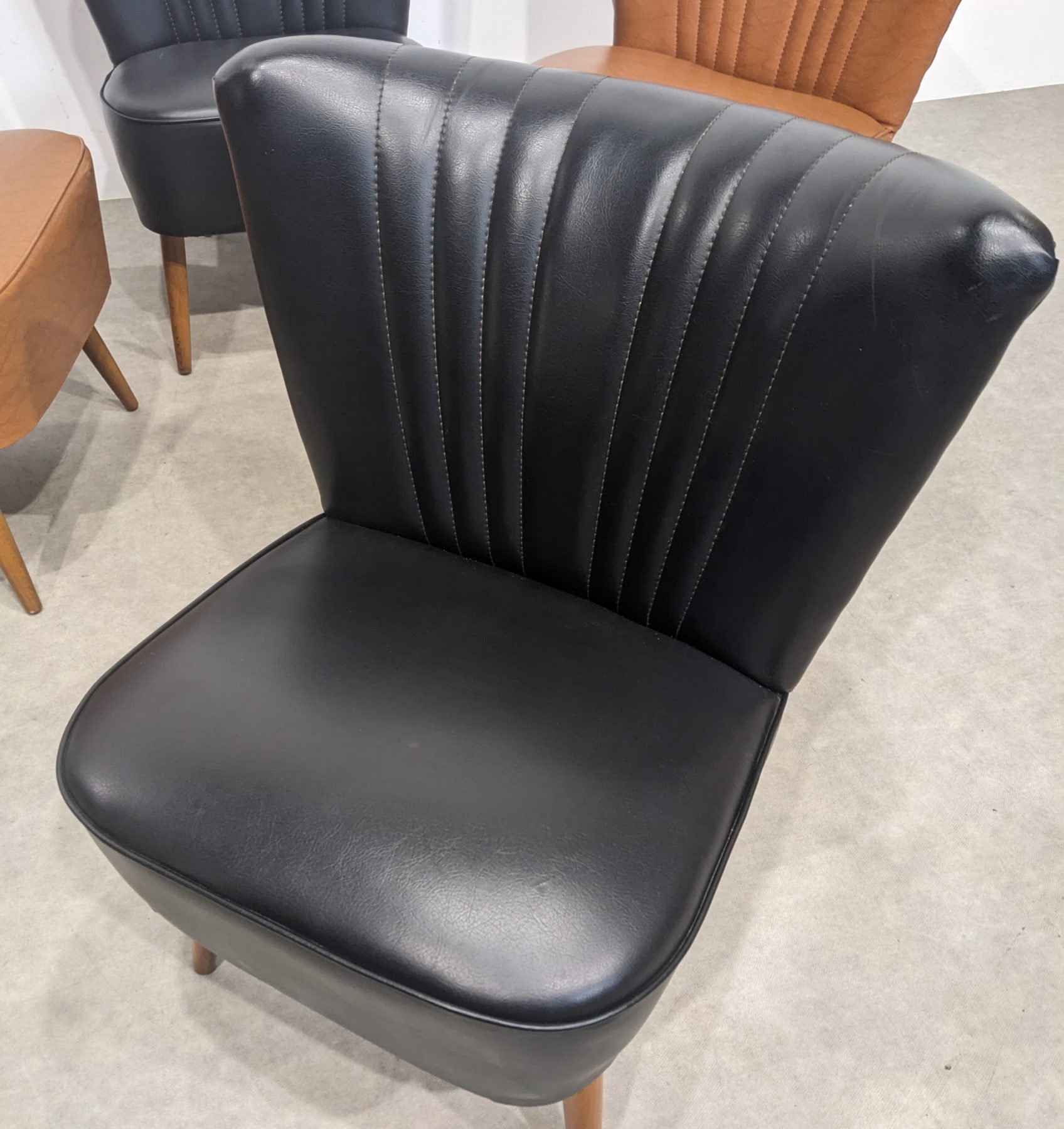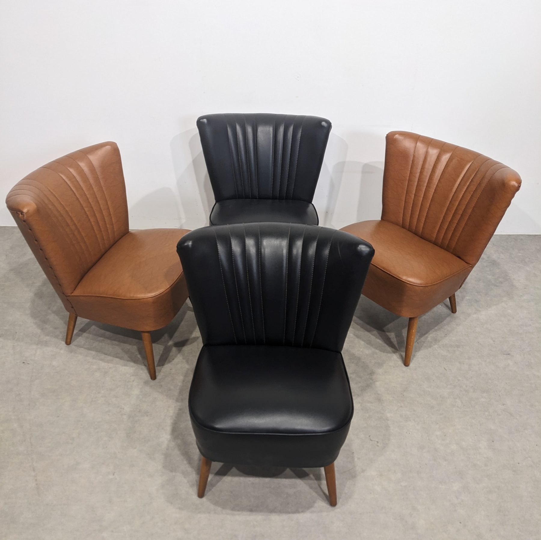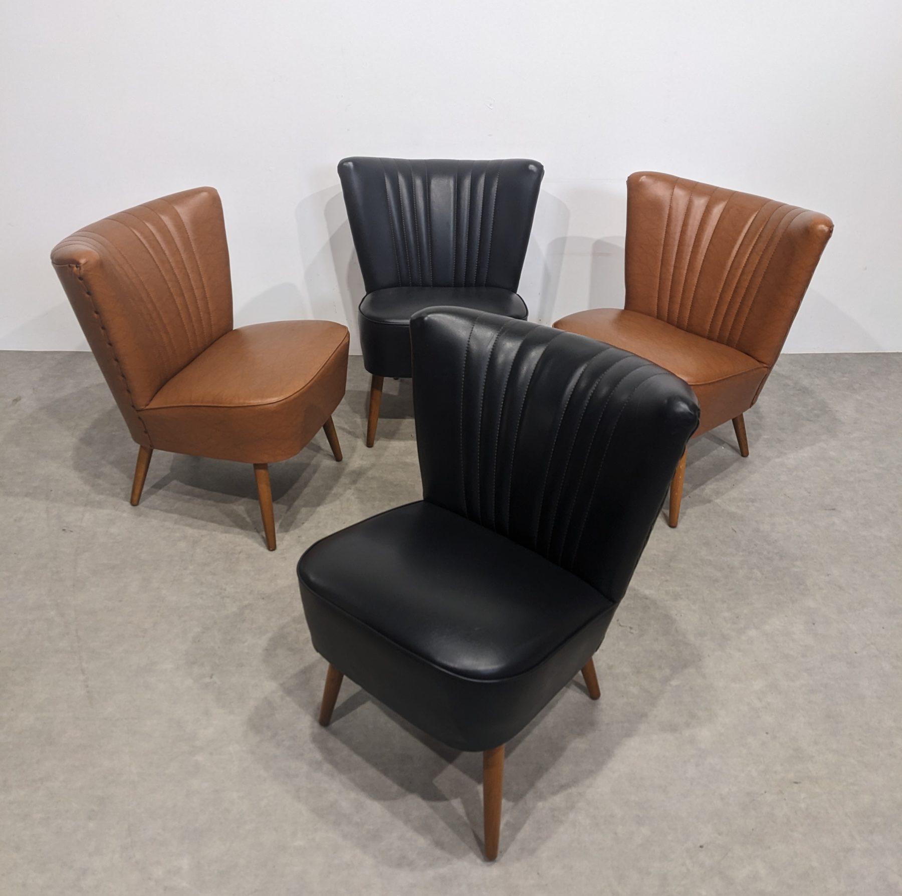 Skaï impeccable. Deux bruns et deux noirs.